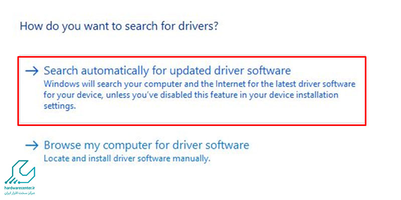 انتخاب گزینه search automatically for update driver software امکانی را فراهم می کند که ویندوز به صورت آنلاین، برای درایورهای درست سرچ کند. درایور های پیدا شده به صورت اتوماتیک دانلود و نصب می شوند. توجه داشته باشید که در مرحله آخر، سیستم ریستارت می شود پس نگرانی از این بابت نداشته باشید.